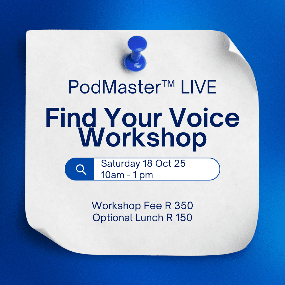 Join us for the next Podmaster™ Live workshop on Saturday, 17 January 2026), at Protea Ranch, Pretoria – an immersive, in-person session designed to help you understand who you’re really talking to when you switch on the mic.